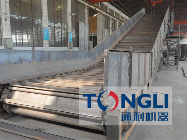輸送用軋制型鋼制作,從而在加載區(qū)域形成一個堅固的結(jié)構(gòu),側(cè)壁也采用厚鋼板制作,在側(cè)面機架設(shè)有迷宮式密封結(jié)構(gòu),可有效防止金屬物料從兩側(cè)外溢,并防止傳動鏈損壞。運輸皮帶有鋼板加工而成,裝有焊接“琴鍵”式鉸鏈,具有足夠的鋼度。所有的輥輪和導(dǎo)軌部經(jīng)淬火合金鋼制作,以減少磨損,延長設(shè)備使用壽命。