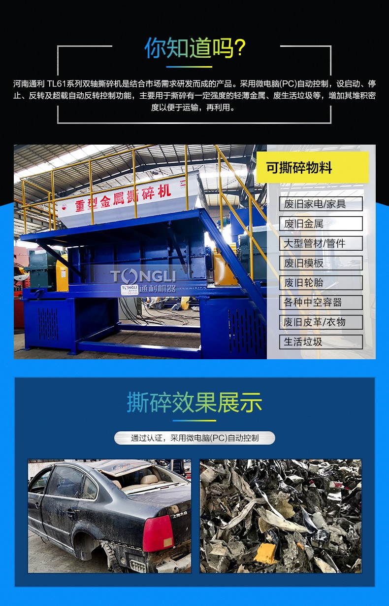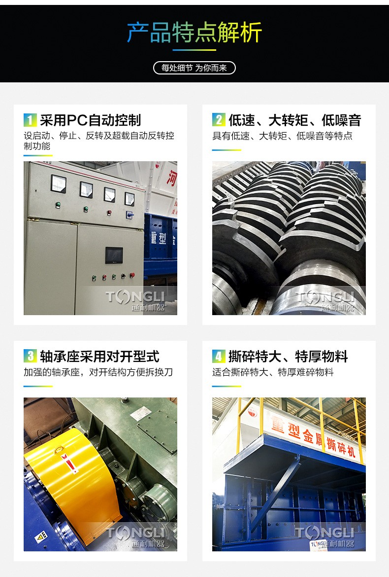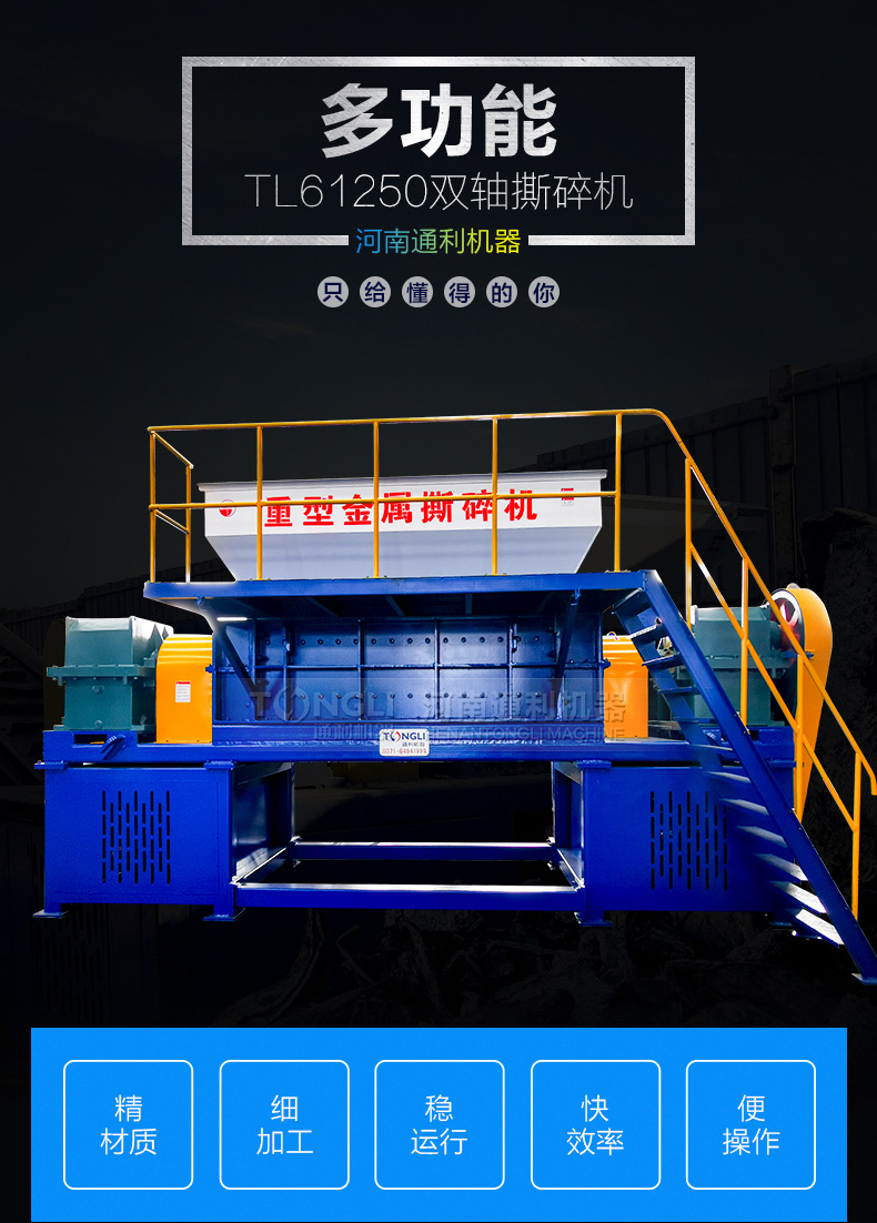 雙軸撕碎機是結(jié)合市場需求而成的產(chǎn)品。采用微電腦(PC)自動控制,設啟動、停止、反轉(zhuǎn)及載自動反轉(zhuǎn)控制功能,主要用于撕碎有一定強度的輕薄金屬、廢生活垃圾等,增加其堆積密度以便于運輸,再利用。