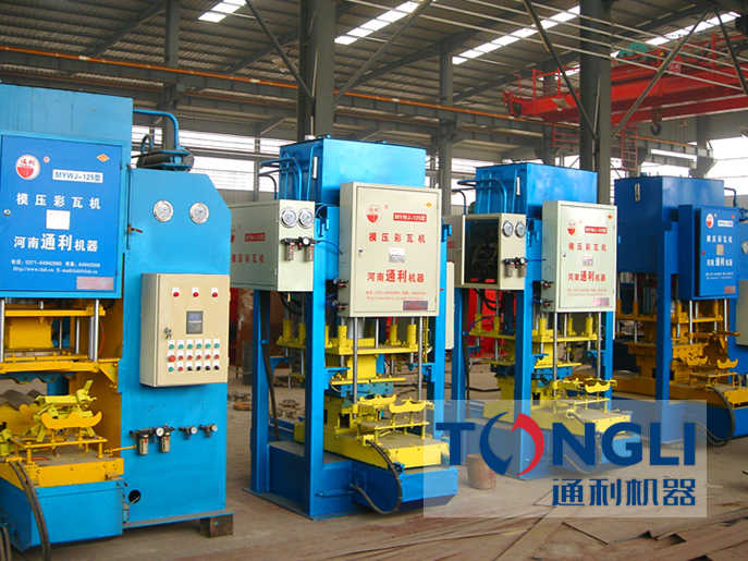 自1985年通利生產(chǎn)出臺制瓦設(shè)備以來,相繼推出余種制瓦機(jī)設(shè)備,滿足客戶的不同需求。2005年成功的MYWJ-125型水泥彩瓦機(jī)生產(chǎn)線。通利彩瓦機(jī)設(shè)備集機(jī)、電、液氣于一體,在生產(chǎn)過程中給料、成型、脫模、推出部實行自動化,由于生產(chǎn)彩瓦工藝是噸位模 壓成型,因此,制品成型美觀,強(qiáng)度,抗?jié)B性能,且防凍性能是其它瓦型無法比試的,已廣泛應(yīng)用于城市農(nóng)村居民住宅,并被確定為先使用的新型建筑屋面材料。